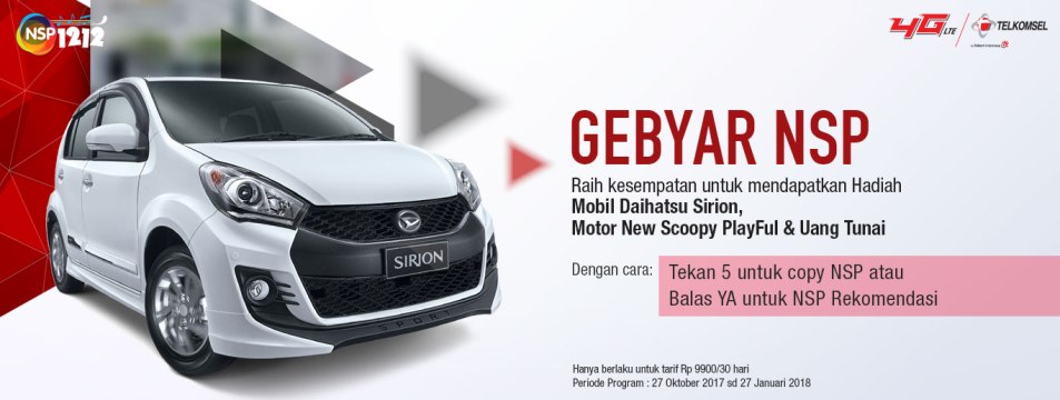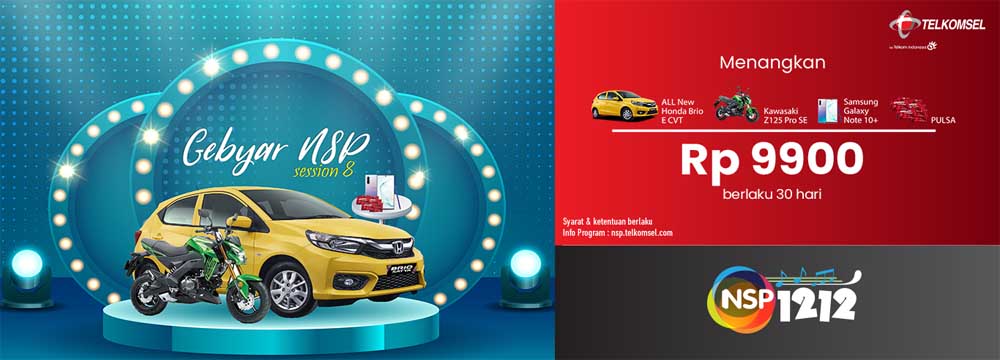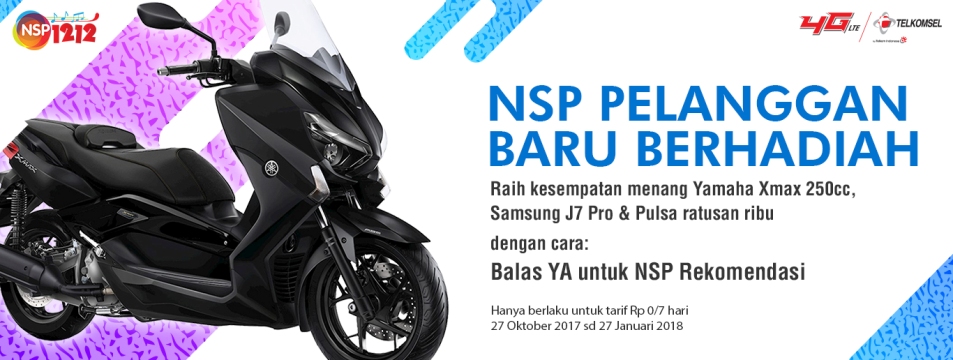 Ayo jangan sampe ketinggalan ikutan program yang paling ditunggu oleh pelanggan NSP Telkomsel, apalagi kalau bukan SEMARAK NSP 121 berHADIAH MOTOR YAMAHA MT-15 & PULSA TOTAL JUTAAN RUPIAH…Wow keren bgt kan……Yuk ajak semua kerabat teman dekat buat ikutan program berHADIAH ini…